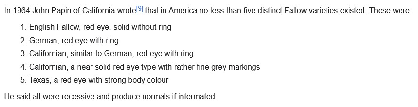 Como idea propia, se me ocurrió que quizá el Dun fallow esté relacionado con el Flavo texas. Pero es una suposición, pues como demuestran, lo que llamamos "flavo" son todas mutaciones independientes. ¿Y quién sabe? Tal vez surja alguna más.