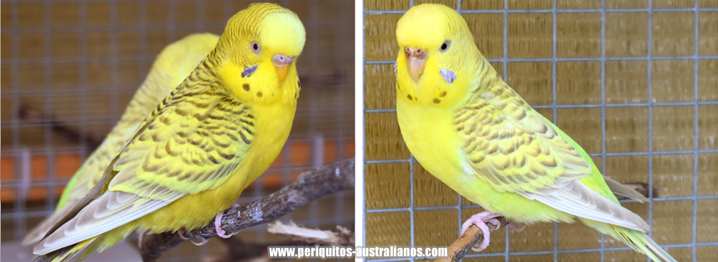 Existen diferentes cepas de flavo alrededor del mundo que no se pueden mezclar entre ellas (Flavo alemán, Inglés, Escocés y el "más reciente", el Dun), pues los cruces entre ellos producen periquitos normales con los ojos negros. Son mutaciones independientes autosómicas recesivas, pero tienen en común características tales como cuerpos aclarados, marcas pardas, o pardo-grisáceas, ojos rojos, patas rosas y pico naranja.