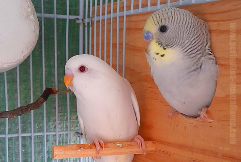 Aunque los veamos algo torpes al principio, no debemos poner más perchas de las necesarias, pues deberán ejercitarse y aprender a moverse como los adultos, y masificando el interior de la jaula no estamos ayudando. Serán perfectamente capaces de defenderse, han nacido para ello. Sí podemos vigilar los primeros días que no estén pasando hambre, y si esto ocurre, averiguar porqué descartando problemas como la dificultad al acceso de la comida, que otros periquitos no los estén acosando, o que hayan desarrollado alguna enfermedad (oportunista). Cabe destacar que a los periquitos jóvenes les fascina su capacidad de vuelo, disfrutan de sus alas como niños con un juguete nuevo, con lo que habremos de permitirles que se esparzan a su gusto y que entrenen sus músculos, ganando fuerza y vigorosidad, salud y bienestar. Con esto también podemos comprender lo terrible que resulta cortarles los vuelos a estas aves cuando recién salen del nido, una práctica cruel y que afortunadamente cada vez escasea más, dónde la única meta es lograr un periquito "manso". No es necesario hacer semejante cosa, los periquitos por sí mismos sabrán como darte cariño y cómo demostrarte su confianza especialmente si han nacido en casa sólo con mostrarles el mismo respeto y cariño que deseas que te muestren ellos responderán poco a poco de la misma forma. |
