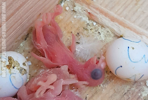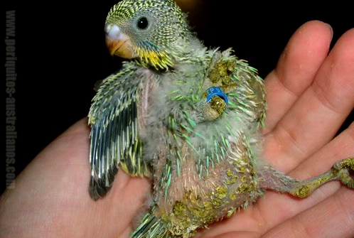 ¿Puedo coger a los pollitos? Tras el nacimiento, suele comprobarse si la madre alimenta al recién nacido. Es relativamente fácil verlo mientras la madre nos permita ver (a veces se quedan sobre los pichones para protegerlos), pues destaca la perlita blanco amarillenta de la toma de "leche de periquita", que desde la primera toma y de forma gradual, la hace crecer a demanda.