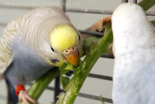 Seguramente si les ofreces hojas verdes o tallos como los que he recomendado al comienzo de esta sección, los periquitos por sí mismos irán a picotear y no le harán ascos. Si bien,